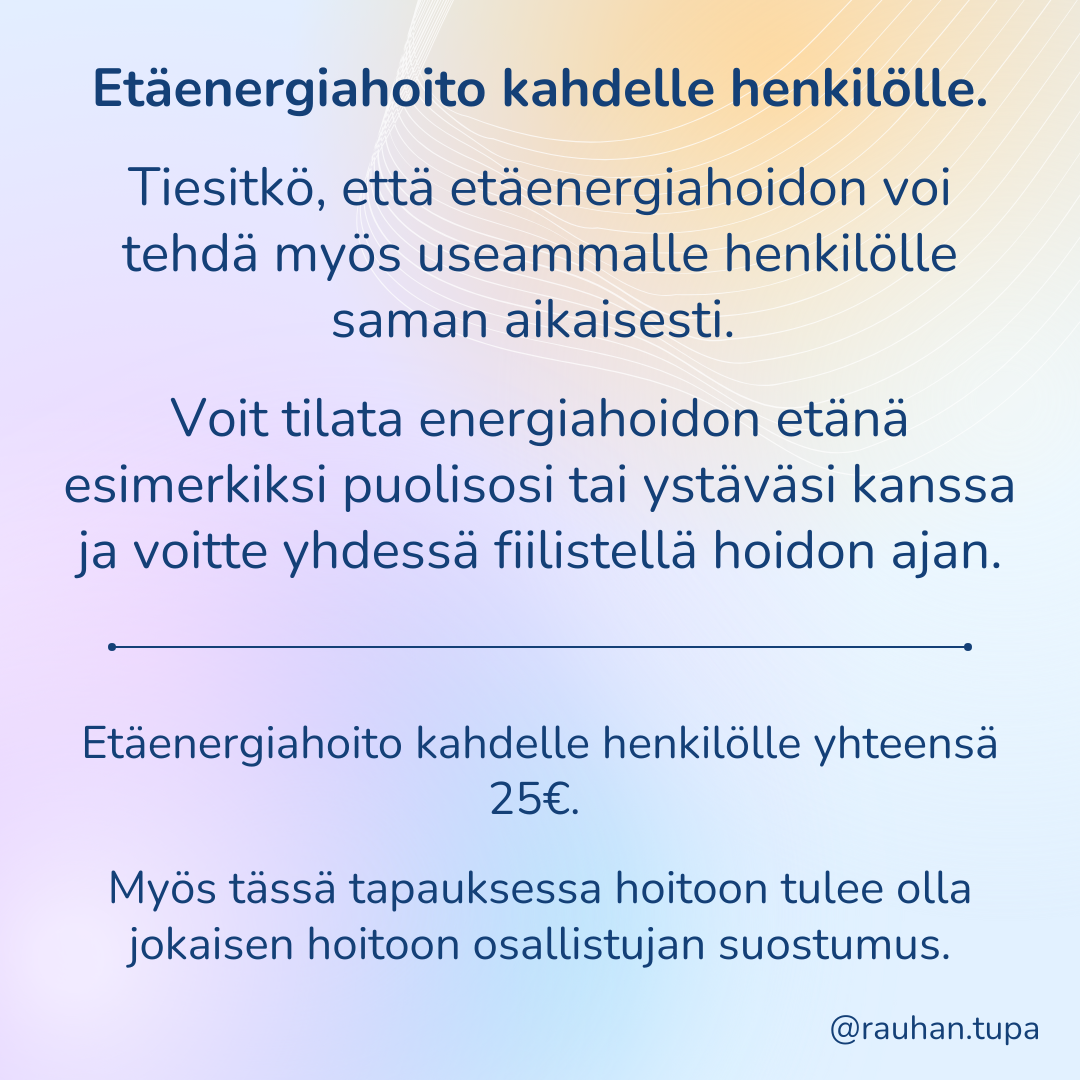 Etäenergiahoito on oiva tapa vahvistaa hoidettavien elinvoimaa.